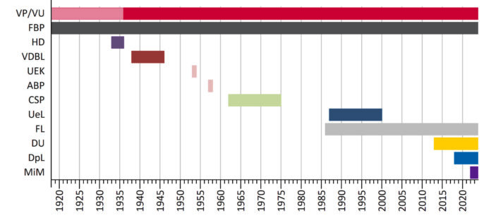 Nach den Wahlen 2021 hatte sich noch eine weitere Partei ins Spiel gebracht: Mensch im Mittelpunkt (MiM). Trotz Ankündigung trat diese Partei jedoch weder bei den Gemeindewahlen 2023 noch bei den Landtagswahlen 2025 an.