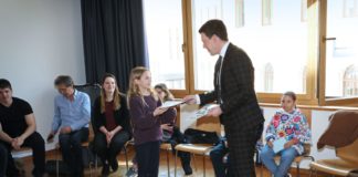 Regierungsrat Manuel Frick nimmt Kinderberichte entgegen