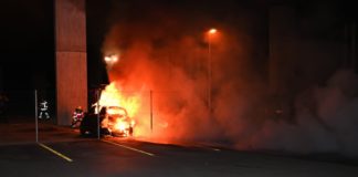 Zwei brennende Autos auf Aussenparkplatz des Polizeistützpunkts