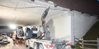 Mit Lastwagen in Unterführungsdecke geprallt